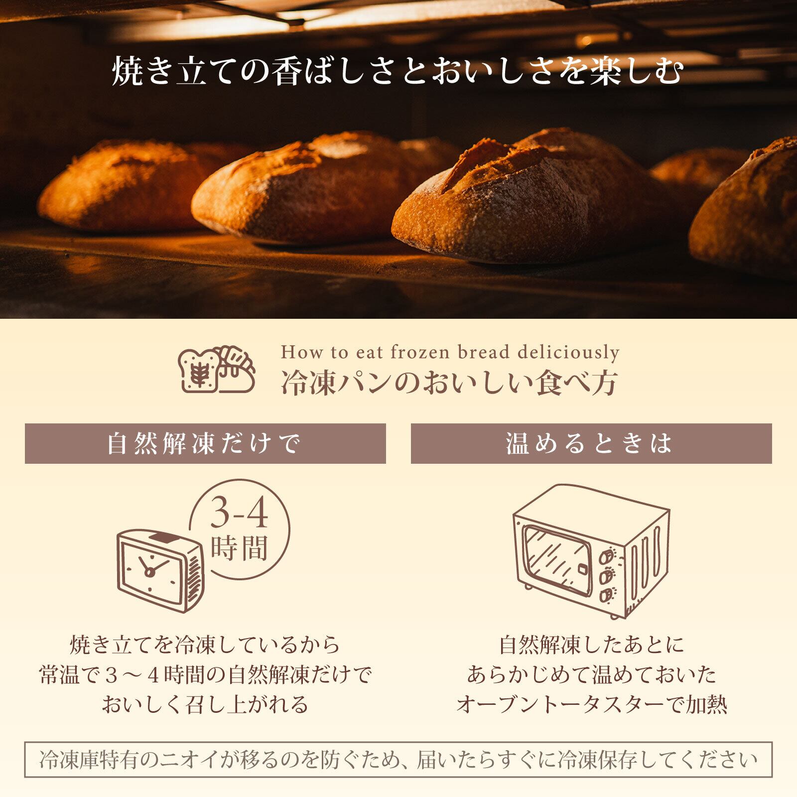 焼き立ての風味をそのまま冷凍便でお届けします。ぜひ、あなたのご家庭の食卓で、新しいパンの楽しみ方を見つけてください。
